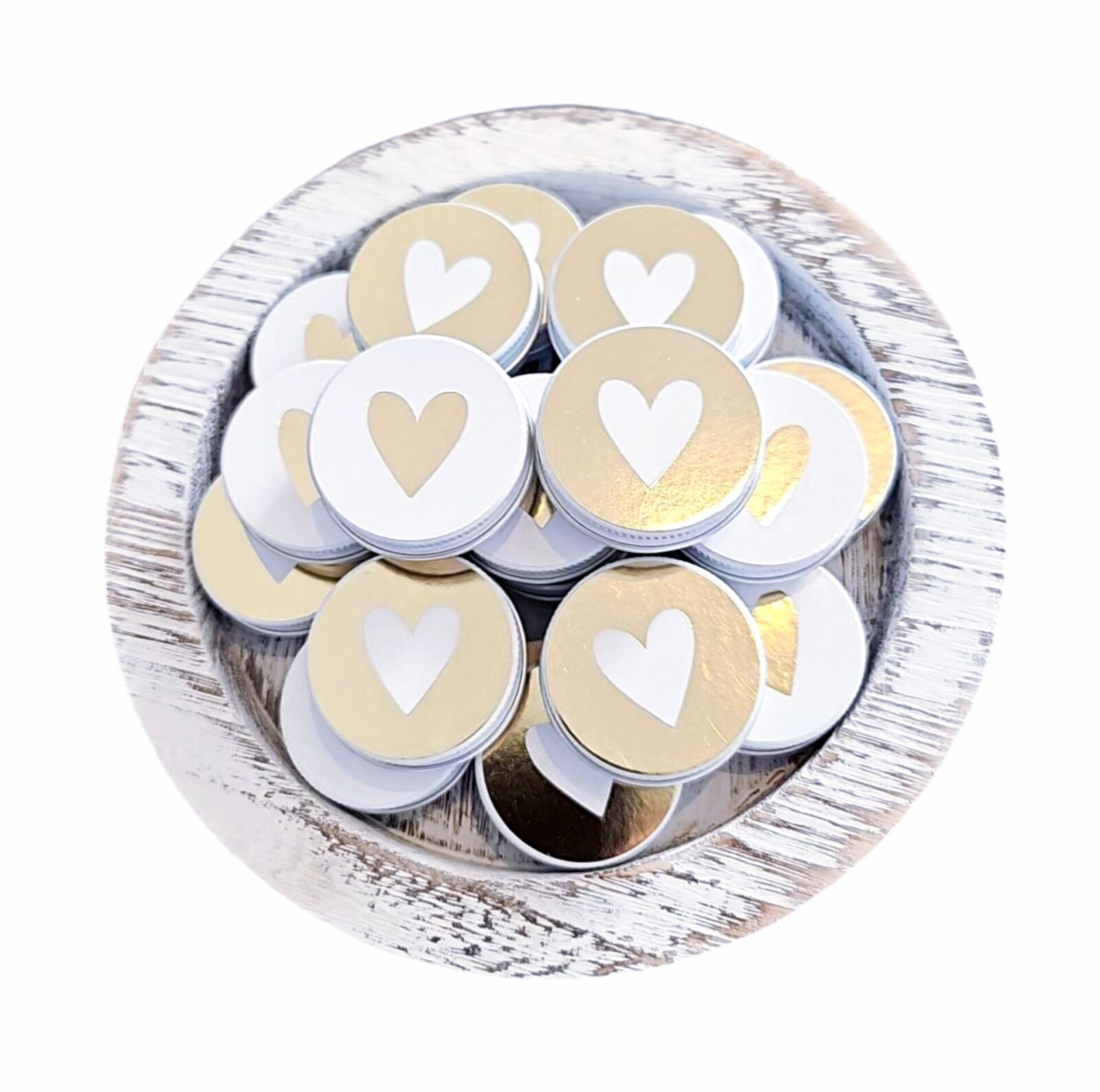 Afbeelding op deksel: Hartje wit op goudkleurige achtergrond